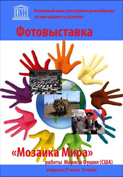 В музее истории молодёжного движения состоится открытие фотовыставки «Мозаика мира»21 мая 2012 г. в 15.00 в музее истории молодёжного движения состоится открытие фотовыставки «Мозаика мира», приуроченной к 10-летней годовщине Всемирного дня культурного разнообразия во имя диалога и развития. В 2001 году ЮНЕСКО приняла Всеобщую декларацию о культурном разнообразии, а в декабре 2002 года согласно резолюции Генеральной Ассамблеи ООН 21 мая был провозглашён Всемирный день культурного разнообразия во имя диалога и развития.Этот день призван побудить людей глубже осознавать ценности культурного разнообразия и научиться развивать сотрудничество между народами мира. На выставке будут представлены фотоработы Марисы Фушил, директора Американского культурного центра в г. Москва. Просмотров: 1474