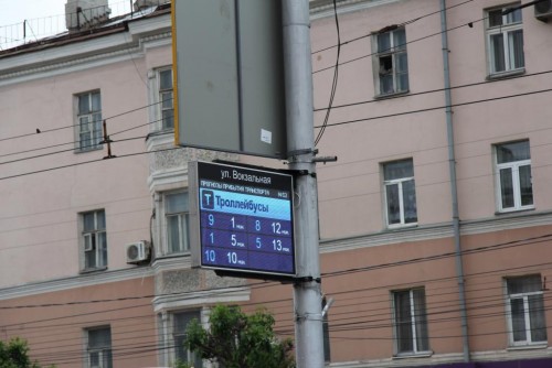 Новые электронные табло на остановках в РязаниНа остановках общественного транспорта в Рязани устанавливают новые электронные табло. Электронное табло нового образца отличаются от установленных ранее тем, что показывают не только информацию о прибытии транспортных средств, но и о погоде, о пробках и т.д.Как сообщил начальник отдела транспорта и связи администрации Рязани Дмитрий Рябчиков, все электронные табло приобретаются и устанавливаются за счет средств инвесторов. Сейчас проводится тестирование новых информационных табло, старые комплексные маршрутные указатели планируется перевесить на другие остановочные павильоны. Всего в этом году на остановках Рязани будет установлено порядка 65 табло. В данный момент уточняются адреса их размещения. На электронное табло выводится информация о приближающемся общественном транспорте, указывается интервал движения, через который на данную остановку прибудет тот или иной автобус или троллейбус. Это стало возможным благодаря спутниковой системе ГЛОНАСС, которой на сегодня оснащено 100% подвижного состава муниципальных транспортных предприятий, коммерческих автобусов и маршрутных такси. Источник: пресс-служба городской администрации Просмотров: 3210