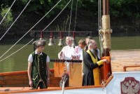 В День России рязанцы побывали на ладье XVII векаСудно под названием «Любовь», реконструкция ладьи XVII века, было создано членами морского детско-юношеского клуба «Петрофлот». 12 июня, в День России, 15-метровая парусная ладья, на борту которой находились кадеты, представители духовенства и экипаж, одетый в форму петровских времен, подошла к пристани у Рязанского кремля.Корабль приветствовал встречающих его рязанцев пальбой из пушек и звоном колоколов. Посмотреть на судно приехали заместитель главы администрации Рязани Лариса Крохалева и начальник управления культуры администрации города Андрей Кашаев. – Подобное событие происходит впервые в Рязани, – рассказал Андрей Кашаев. – В прошлом году мы принимали мордовскую делегацию, которая приезжала в наш город на лодке, сделанной по образцу старинной, однако своего судна у нас не было. Создали его большие энтузиасты – члены клуба «Петрофлот». Посетить ладью «Любовь» и сфотографироваться с экипажем могли все желающие. После стоянки у пристани «Любовь» отправилась в Шумашь, где клуб создает базу для занятий с детьми. Источник: пресс-служба городской администрации Просмотров: 1126