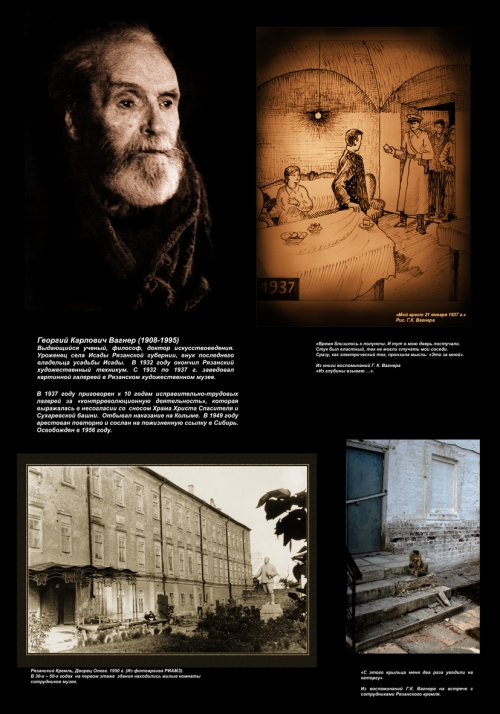 В Рязани открылась выставка «Красное колесо»Экспозиция открылась в рамках Международной научно-практической конференции "Наследие А.И. Солженицына в современном культурном пространстве России и зарубежья". Выставка была создана Рязанским историко-просветительским и правозащитным обществом "Мемориал" в 2006 году. Автор экспозиции – фотохудожник Николай Середа. На экспозиции представлены материалы, которые посвящены как знаковым событиям того времени, так и малоизвестным фактам, которые были установлены в ходе исследовательской работы Рязанского "Мемориала". История политических репрессий на территории Рязанской области рассказана языком фотографии. На снимках прослеживаются судьбы таких знаменитых людей как писатель Александр Солженицын и искусствовед Георгий Вагнер и их менее известных современников, пострадавших в годы террора. Посетители выставки также смогут увидеть фотографии "палачей" - тех, кто подписывал и исполнял смертные приговоры. Сюжеты проиллюстрированы копиями документов и писем, материалами из государственных и частных архивов и современными художественными фотографиями, сделанными Николаем Середой, Евгением Кашириным и другими рязанскими фотографами. "Эта выставка экспонируется в Рязани уже не первый раз, - отмечает Николай Середа. – Всякий раз представленные материалы вызывают живой отклик среди посетителей и для нас это очень важно, ведь цель этой экспозиции привлечь внимание рязанцев к этим страшным историческим фактам, о которых мы не должны забывать. Мы хотели бы напомнить о тех, кто невинно пострадал от репрессий, и вернуть их имена из забвения". Выставка продлится в главном здании Горьковской библиотеки до 15 января. Вход свободный. Источник: Обзоры "Рязань Вести" Просмотров: 1424